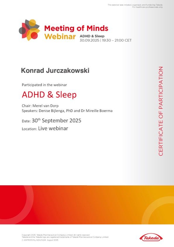 - Jurczakowski K. Summary of the 10th World Congress on ADHD, held in Prague, May 8–11, 2025. Psychiatria Spersonalizowana / Personalized Psychiatry. 2025;4(1):40-44. doi:10.5114/psychs.2025.152592.
